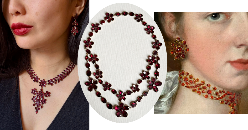 My favorite way to serve garnets is flat cut and foil backed, as in Georgian era pieces. This method maximizes the color payoff while also creating a lacy effect when worn. SWOON.